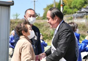 4月7日「吉田ただとも」候補、由布・久重・玖珠・日田方面へ